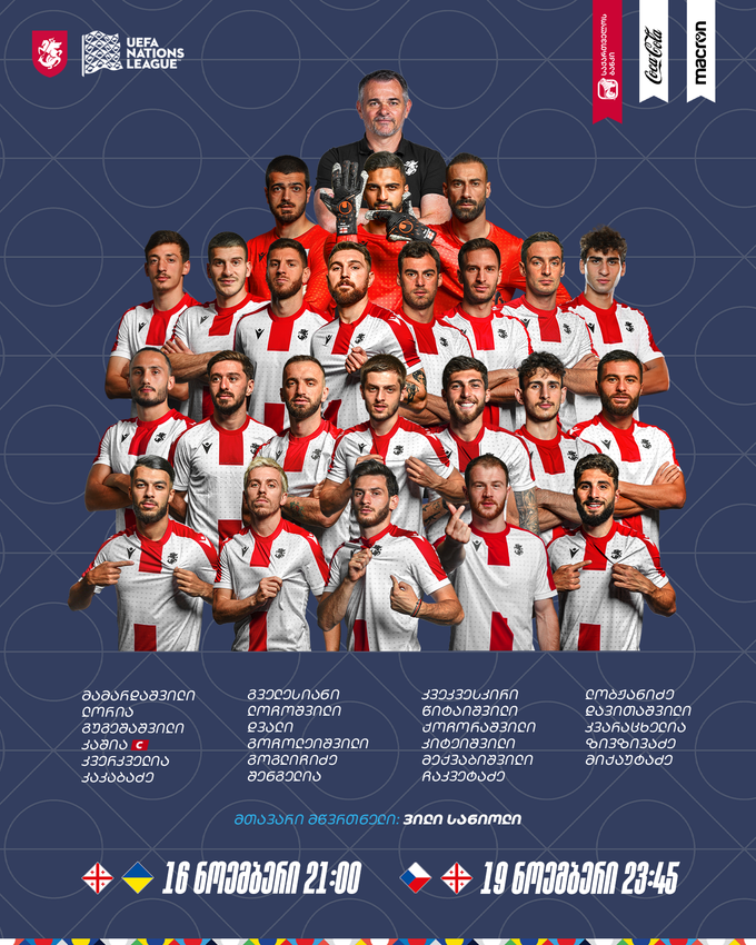 Головний тренер Грузії Віллі Саньоль оголосив склад команди на матчі Ліги націй, які відбудуться в листопаді.