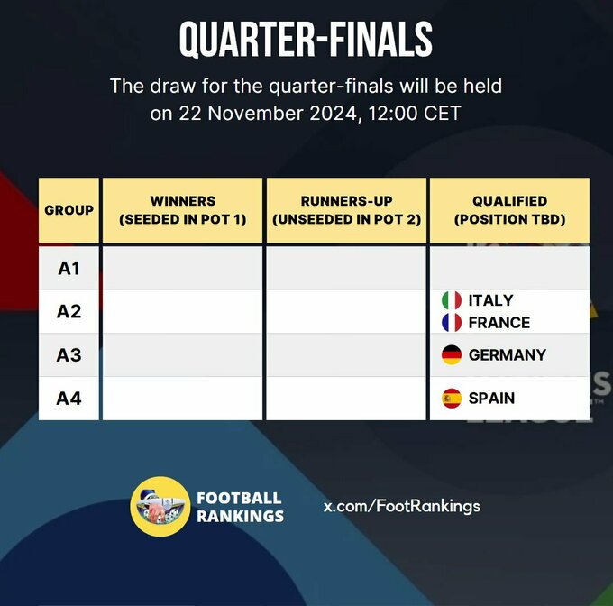 У плей-оф Ліги націй вийшли Німеччина, Іспанія, Італія, Франція.