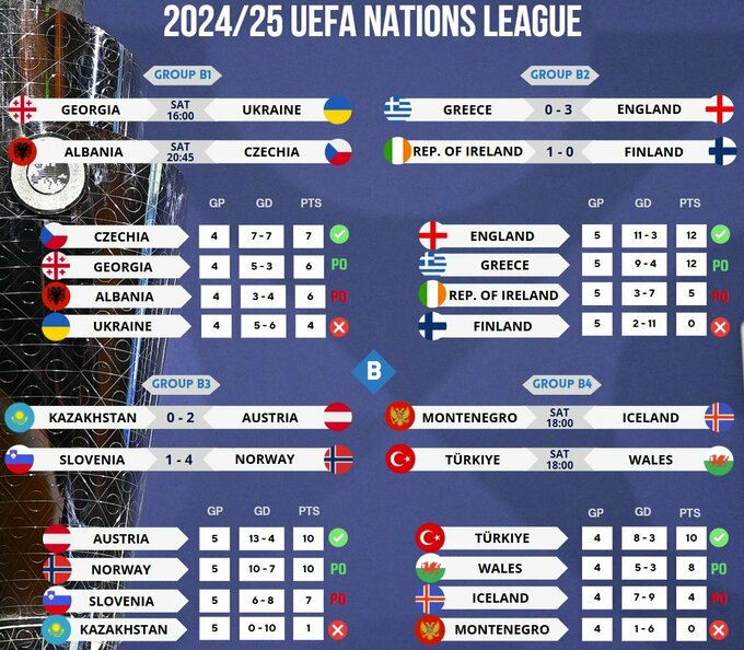 Підсумки дня Ліга націй. Турнірні таблиці: вже відомі 4 чвертьфіналісти