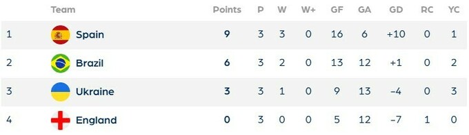 Збірна України 16 листопада зіграє матч за третє місце на турнірі з Англією. У фіналі зустрінуться Іспанія та Бразилія.