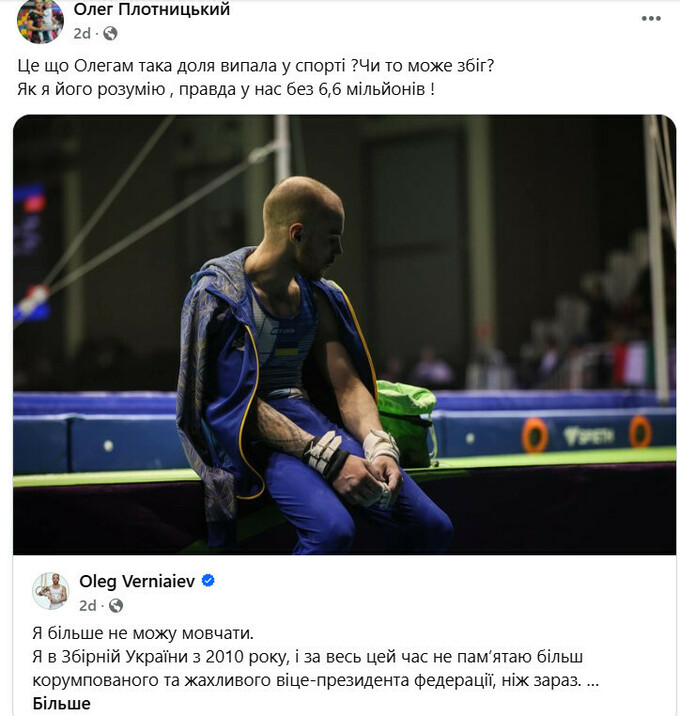 До того часу, поки не з’явився в мережі резонансний пост олімпійського чемпіона зі спортивної гімнастики Олега Верняєва про ситуацію в його виді спорту і корупційний скандал навколо віце-президента профільної Федерації Стелли Захарової.