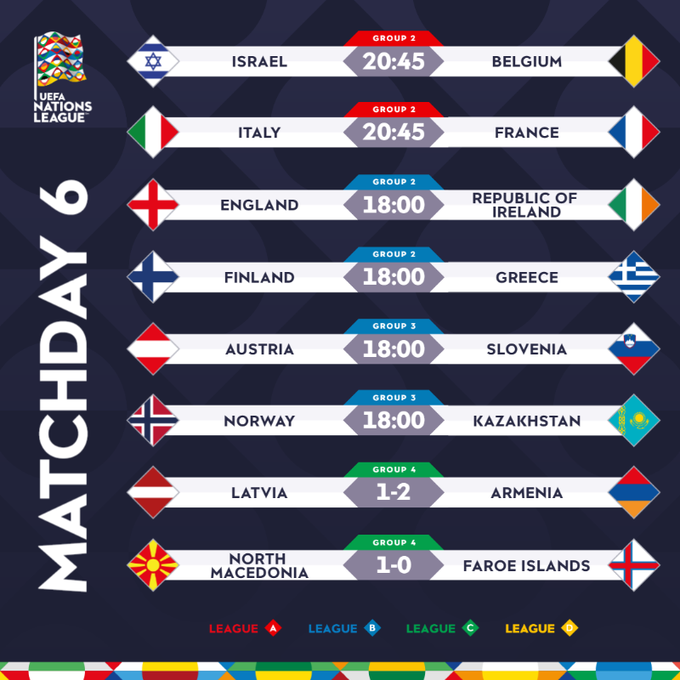 Дивіться 17 листопада поєдинки 6-го туру Ліги націй