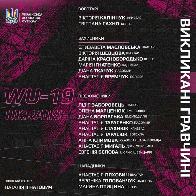 Наставниця молодіжної збірної України WU-19 Наталія Ігнатович визначилася із заявкою на відбіркові матчі чемпіонату Європи 2025 року.
