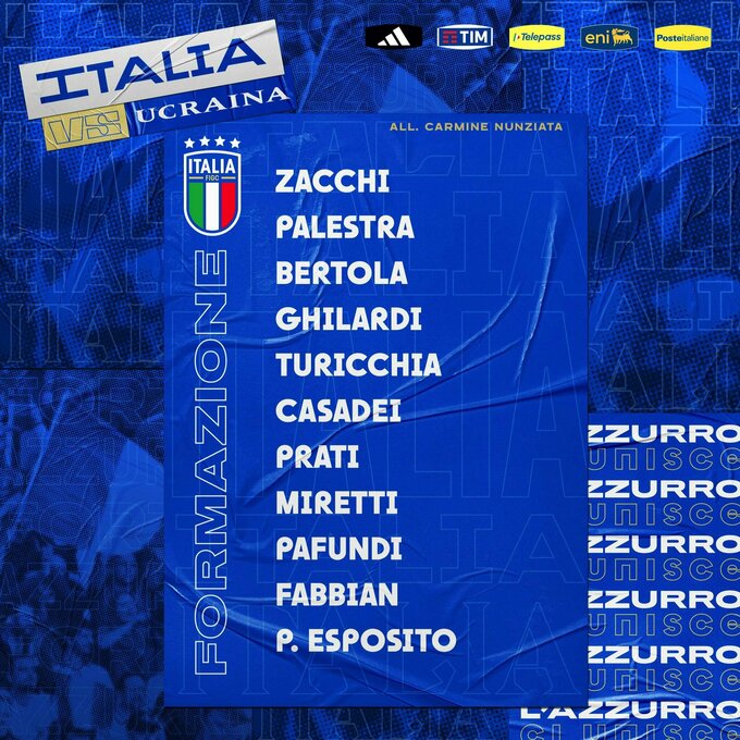 Італія U-21: Дзаккі (Сассі, 46) – Палестра, Бертола, Гіларді, Туріккья (Руджері, 74), Касадеї (Вольпато, 74), Праті, Міретті (Ньонто, 58), Пафунді (Ндур, 58), Фаббіан, П.Еспозіто (Амброзіно, 74).