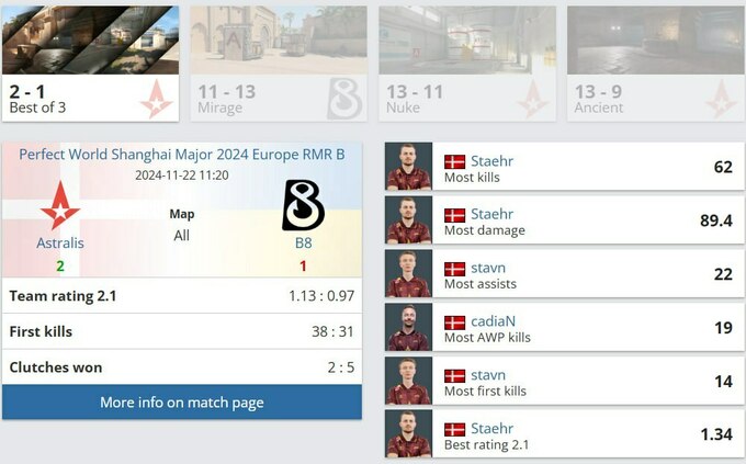 Таким чином, B8 залишаються без квитка на Major, тоді як Astralis поки зберігають шанси, попри свою невпевнену гру.