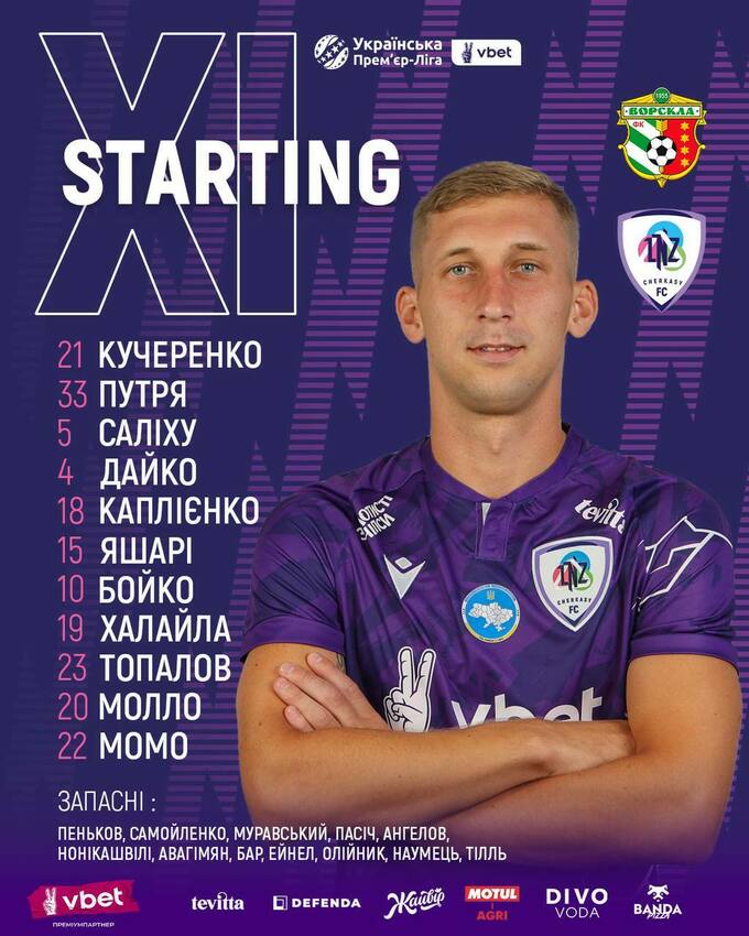 Запасні: Домолега, Корнієнко, Чорноморець, Хрипчук.