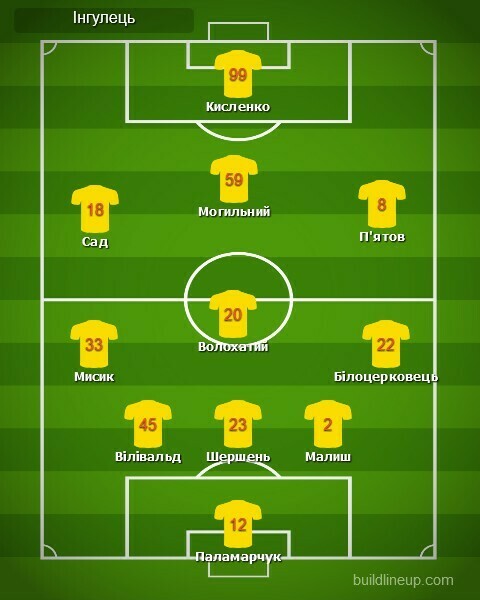 «Інгулець»: Паламарчук, Вілівальд, Малиш, Шершень, Мисик, Волохатий (Гаджук, 61), П'ятов, Сад (Резепов, 61), Могильний (Лісняк, 61), Білоцерковець, Кисленко