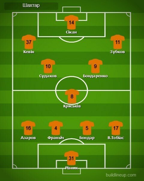 «Шахтар»: Різник, Франьїч, Бондар, Криськів, Судаков (Педріньйо, 64), Зубков (Швед, 81), Азаров, Вінісіус Тобіас, Бондаренко (Марлон, 81), Кевін (Невертон, 64), Сікан (Егіналду, 64)
