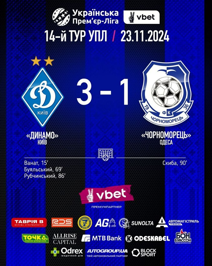 До честі одеситів, вони в компенсований час уникли великого фіаско - Скиба виявився спритнішим за всіх під носом у Бущана під час подачі зі штрафного. 3:1 – «Динамо» комфортно перемогло і з 35 очками вийшло на чисте 1-ше місце в таблиці УПЛ. «Олександрія» йде другою, маючи 32 пункти, але в запасі гру туру з «Вересом». У «Чорноморця» 13-та позиція і 12 очок.