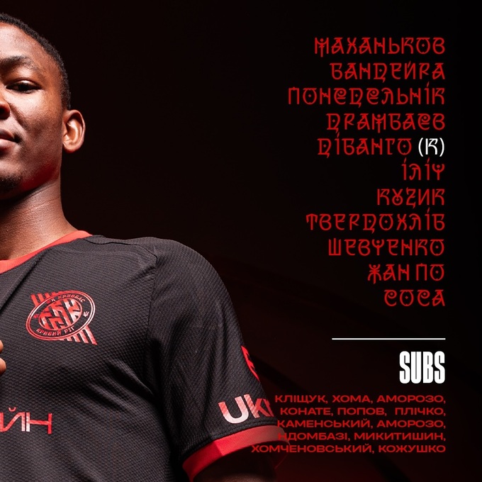 Запасні: Кліщук, Хома, Плічко, Конате, Попов, Каменський, Ндомбазі.