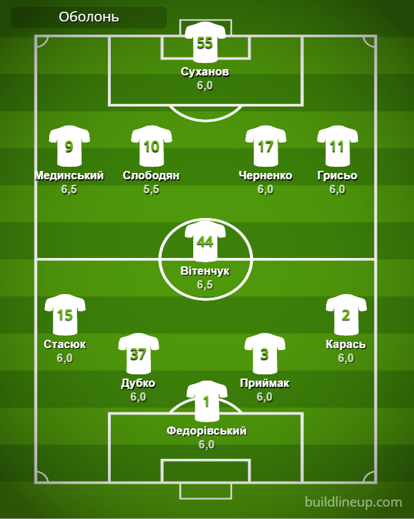 «Оболонь» (заміни): Блізніченко – 6,5, Бичек – 6,0, Тарануха – 6,0, Лях – 6,0, Теслюк – б/о.