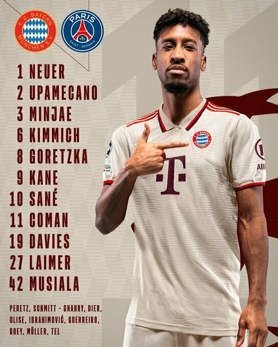 «Баварія»: Ноєр – Девіс, Кім Мін Дже, Упамекано, Лаймер – Горецка, Кімміх – Коман (Гнабрі, 72), Мусіала (Мюллер, 77), Сане (Олісе, 72) – Кейн.