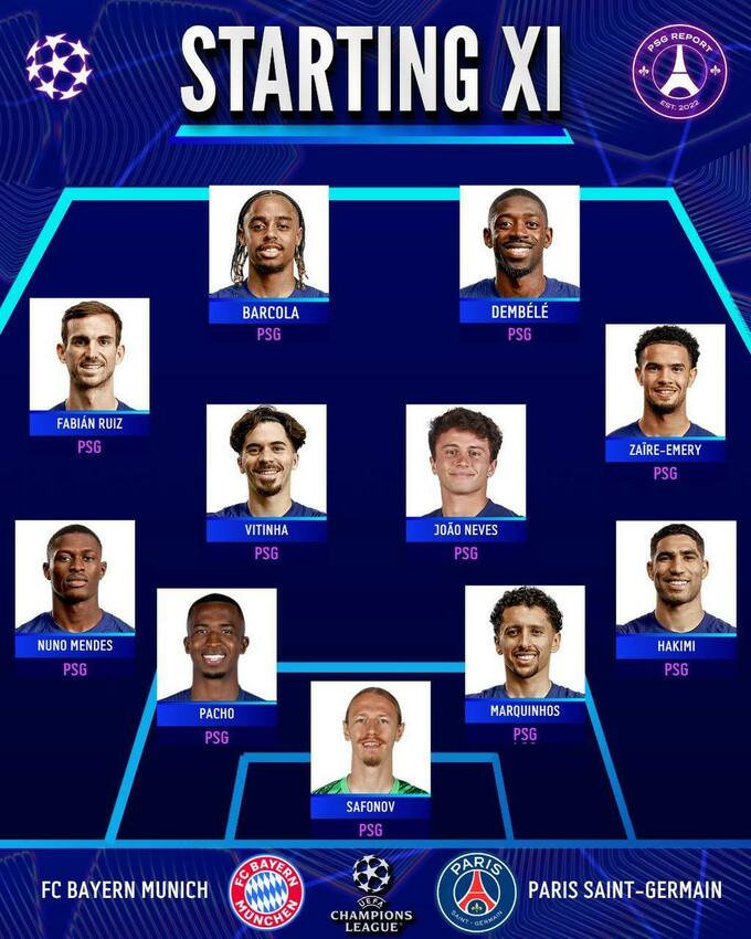 ПСЖ: сафонов – Мендеш, Пачо, Маркіньйос, Хакімі – Невеш, Вітінья, Заїр-Емері (Кан Ін, 65) – Баркола (Рамуш, 72), Руїс (Асенсіо, 83), Дембеле.