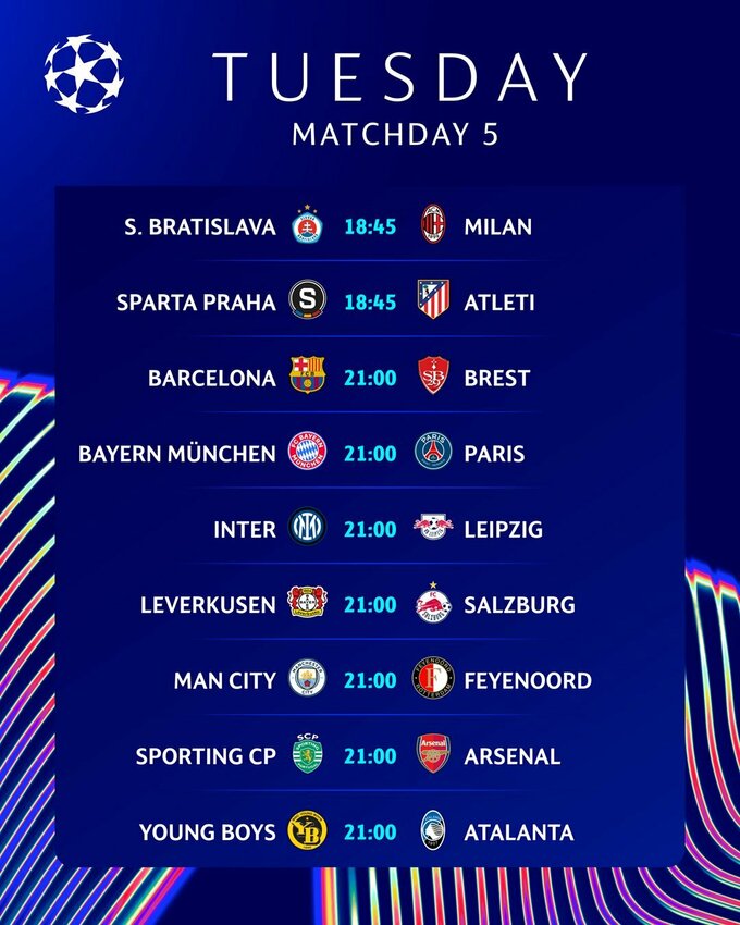 🏆 Ліга чемпіонів. 5-й тур, 26 листопада