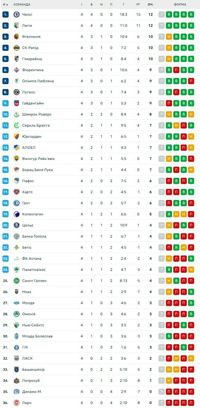 4-й тур Ліги конференцій. Челсі – на вершині, хто ще набрав максимум?