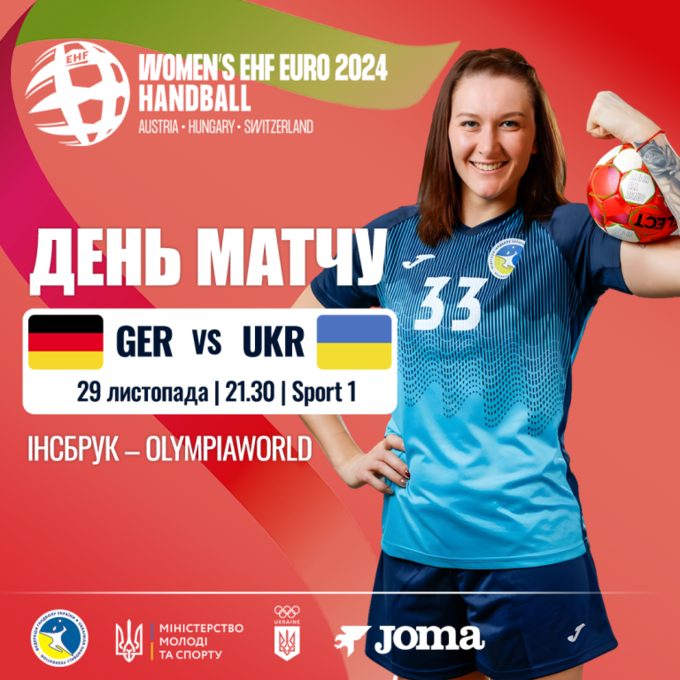 29 листопада о 21:30 жіноча збірна України стартує на чемпіонаті Європи 2024 з гандболу. Українські гандболістки в австрійському Інсбруку зіграють проти збірної Німеччини.