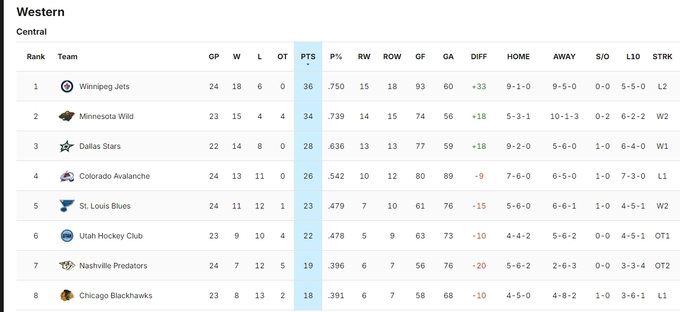 На Заході лідером залишається Вінніпег, але до Джетс наближається Вегас. Лицарі зуміли обіграти Вінніпег 4:3, скоротивши відставання у конференції лише до трьох очок.