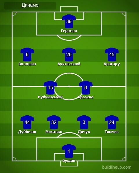 «Динамо»: Бущан, Дубінчак (Попов, 79), Михавко, Дячук, Тимчик, Бражко, Волошин, Рубчинський, Брагару (Кабаєв, 46), Буяльський (Саленко, 91), Герреро (Ванат, 72)