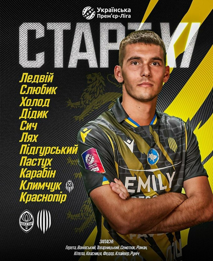Рух: Ледвій, Сич, Холод, Дідик, Слюбик, Підгурський, Лях, Пастух, Карабін, Краснопір, Климчук