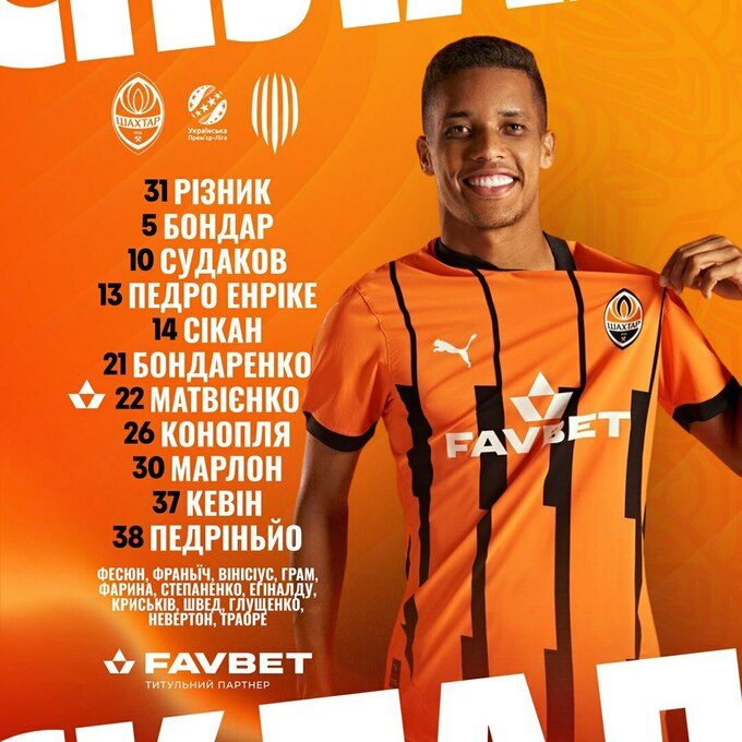 Шахтар: Різник, Педро Енріке, Матвієнко, Бондар, Конопля, Бондаренко, Марлон, Судаков, Кевін, Педріньо, Сікан