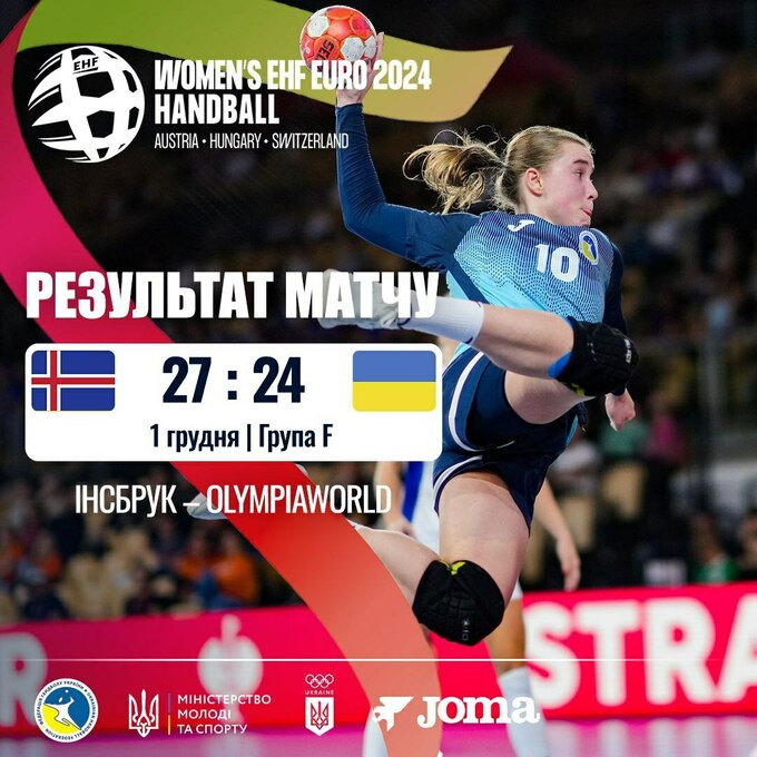 1 грудня о 21:30 жіноча збірна України провела матч 2-го туру чемпіонату Європи 2024 з гандболу в австрійському Інсбруку проти збірної Ісландії (24:27).