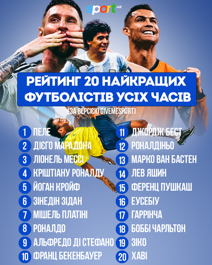 Рейтинг найвеличніших футболістів в історії GiveMeSport: