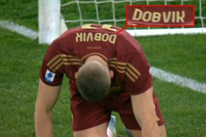 На другий тайм українець вийшов у футболці з неправильно написаним прізвищем. Замість Dovbyk на спині у нападника красувався напис Dobvik.