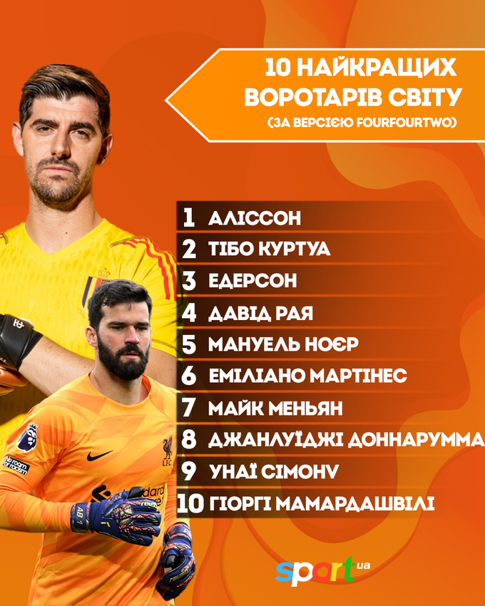 Авторитетний британський портал FourFourTwo оприлюднив рейтинг найкращих воротарів у світі на сьогодні.