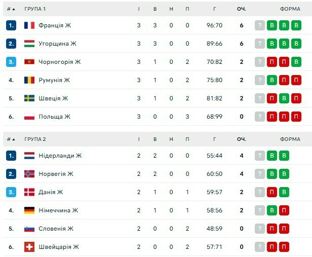 У групі 2 попереду Нідерланди та Норвегія (по 2 виграші у двох матчах).
