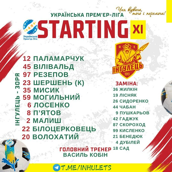 «Інгулець»: Паламарчук – Катрич, Жовтенко, Дихтярук, Свистун – Лосенко – Могильний (Сад, 76), П’ятов, Волохатий, Фарасєєнко – Пушкарьов.