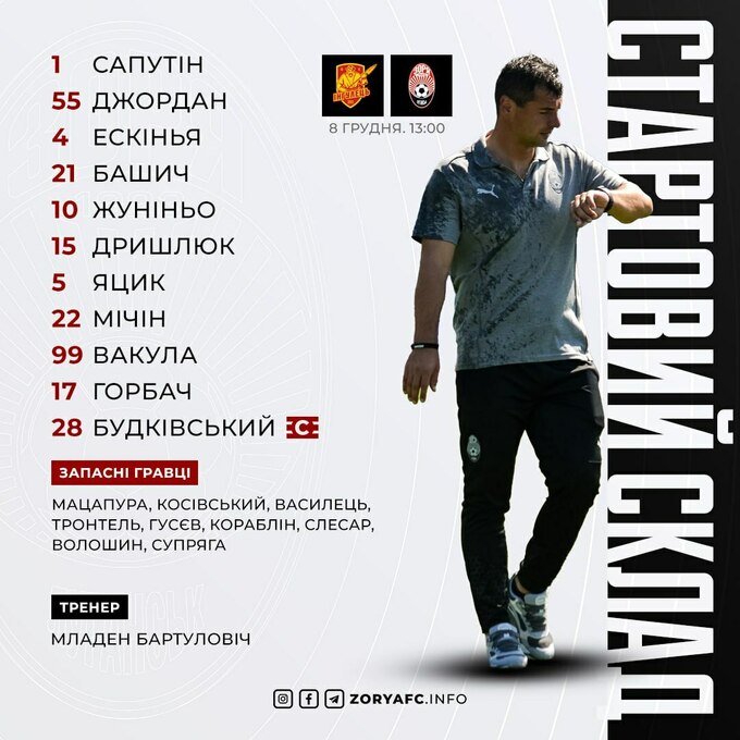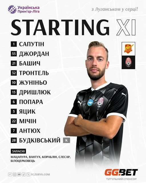 «Зоря»: Сапутін – Жуніньйо (Вантух, 71), Башич, Джордан, Тронтель – Дришлюк (Кораблін, 71), Попара, Мічин – Яцик, Будківський, Антюх.