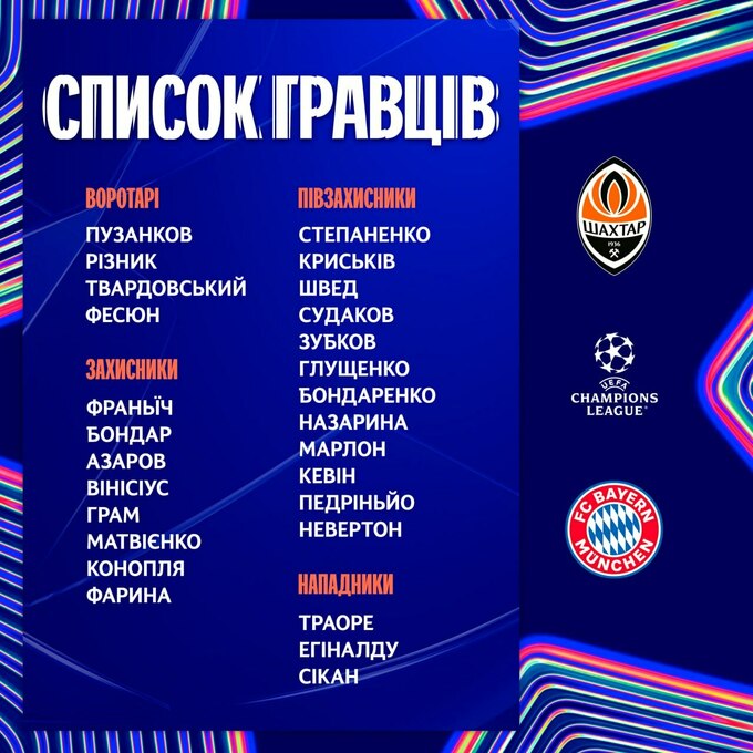 У вівторок, 10 грудня, відбудеться матч 6-го туру основного етапу Ліги чемпіонів 2024/25 між донецьким «Шахтарем» та «Баварією».