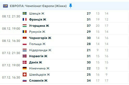 Результати матчів 7 та 8 грудня