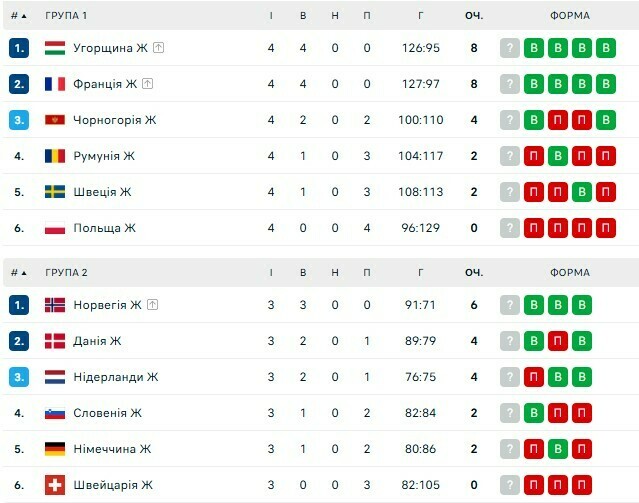 У групі 1 достроково до півфіналу вийшли Франція та Угорщина, які здобули по 4 перемоги у 4 матчах.