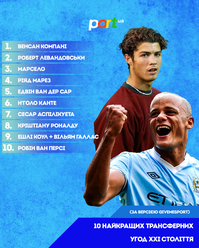 Топ-10 найкращих трансферних угод ХХІ століття за версією GiveMeSport: