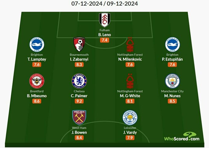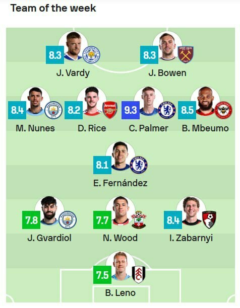 Найкращим гравцем туру експерти обох ресурсів визнали півзахисника «Челсі» Коула Палмера, який оформив дубль з пенальті у ворота «Тоттенгема» (4:3).