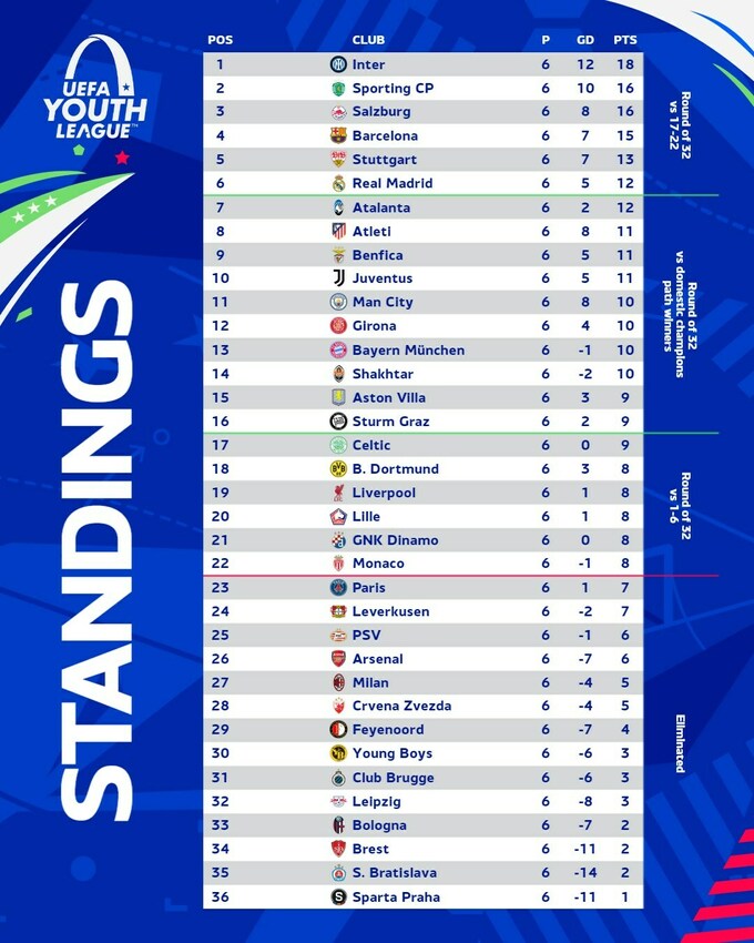 Юнацька ліга УЄФА. Підсумкова таблиця. Шахтар і Динамо вийшли у 1/16 фіналу