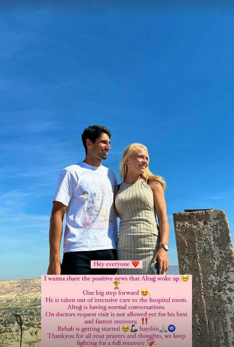 «Хочу поділитися позитивною новиною – Алтуг прийшов до тями. Один великий крок уперед. Його переводять із відділення інтенсивної терапії до лікарняної палати. Алтуг вже може нормально розмовляти. На прохання лікарів, візити поки що не дозволені для його найкращого та якнайшвидшого одужання. Реабілітація розпочинається. Дякую за всі ваші молитви, ми продовжуємо боротися за повне одужання».