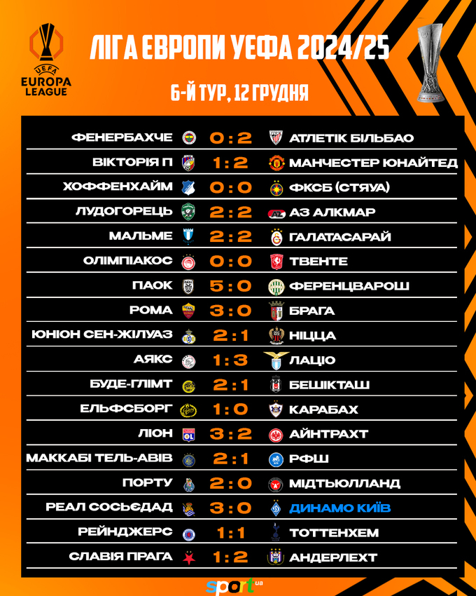 Увечері 12 грудня відбулися поєдинки 6-го туру Ліги Європи.