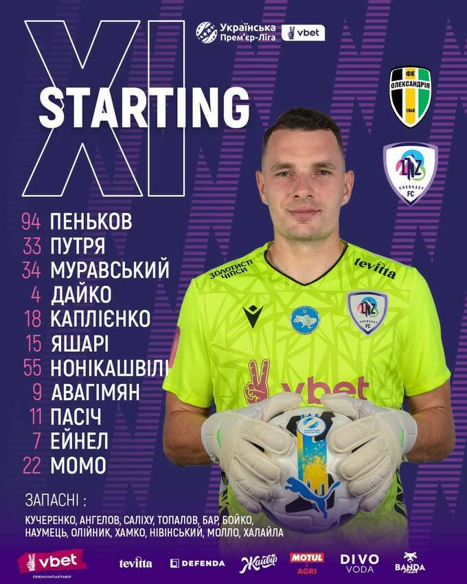 «Олександрія»: Єрмаков – Мартинюк, Шабанов, Кампуш, Кравченко – Мишньов (Шостак, 74), Калюжний (Ващенко, 89), Ковалець (Кулаков, 89) – Козак (Бєляєв, 74), Філіппов (Костишин, 90+5), Безерра.