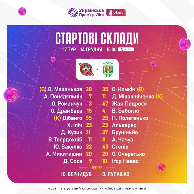 14 грудня відбудеться матч 17-го туру Української Прем'єр-ліги, в якому зустрінуться «Кривбас» (Кривий Ріг) та «Карпати» (Львів).