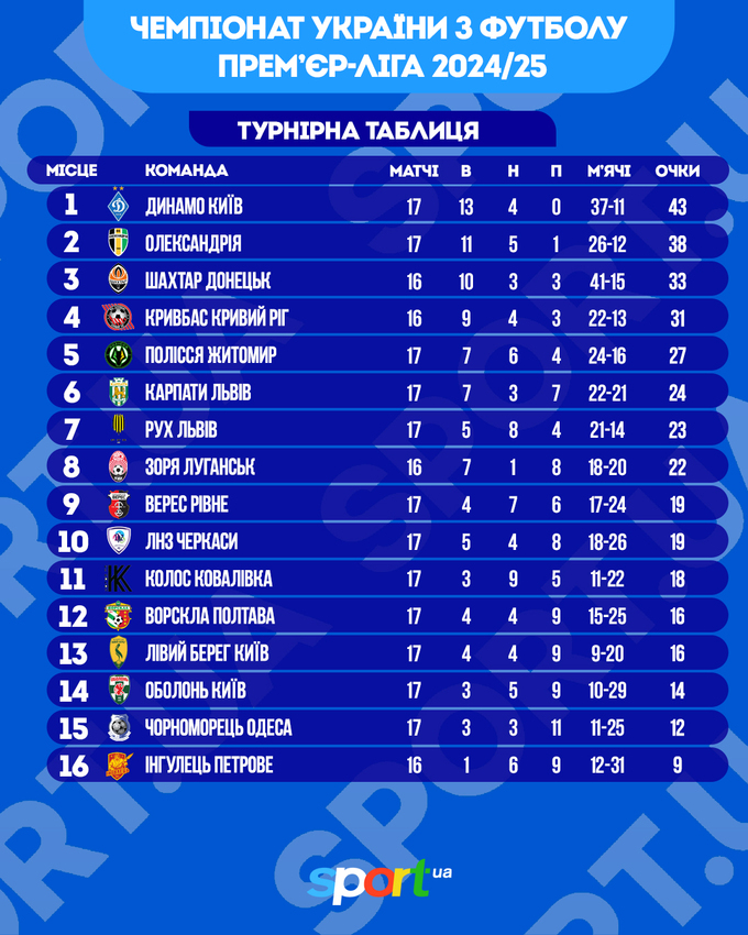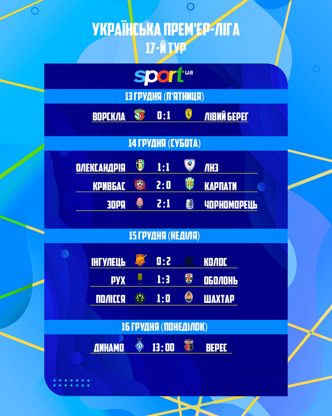 ⚽️ Українська Прем'єр-ліга. 17-й тур