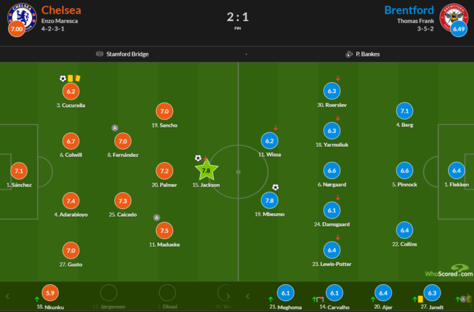 Гра закінчилась з рахунком 2:1 на користь «Челсі». Український півзахисник «Брентфорда» Єгор Ярмолюк вийшов на поле у стартовому складі та провів 75 хвилин, після чого був замінений.