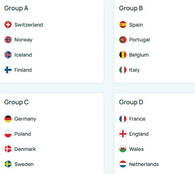 Жеребкуванням у групу C відправлені: Німеччина, Польща, Данія, Швеція. А в групі D за вихід до півфіналу боротимуться: Франція, Англія, Уельс, Нідерланди.