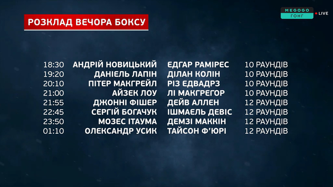 23:59. Далі після паузи буде головний бій Усика та Ф'юрі!