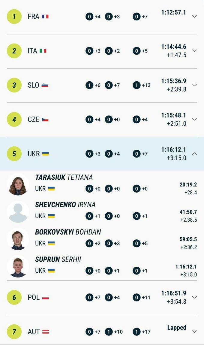 Юніорський Кубок IBU. Україна фінішувала п'ятою в змішаній естафеті