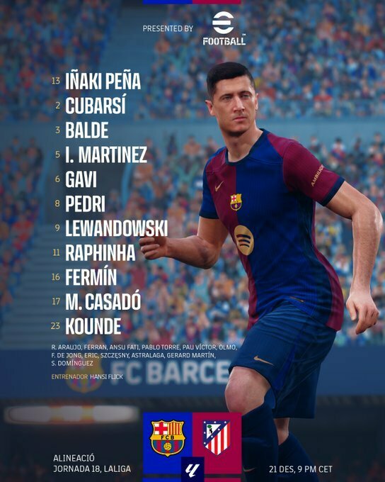 «Барселона»: Пенья – Бальде, Мартінес, Кубарсі, Кунде – Гаві (Торрес, 65), Педрі, Касадо (Гарсія, 80) – Лопес (Ольмо, 64), Левандовські, Рафінья.