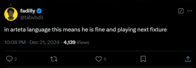 Fadilly: «На мові Артети це означає, що він в порядку і буде грати в наступному матчі».