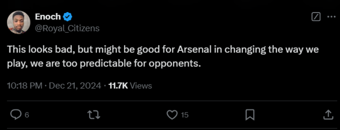Enoch: «Це виглядає погано, але може бути корисним для «Арсенала», оскільки дозволить змінити стиль нашої гри. Ми занадто передбачувані для суперників».