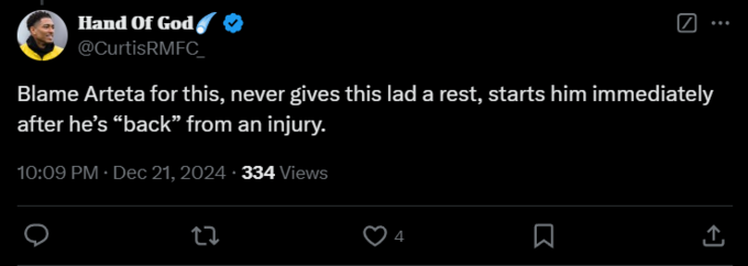 Hand Of God: «Виніть у цьому Артету, він ніколи не дає цьому хлопцю відпочити, випустить його одразу після того, як він повернеться після травми».